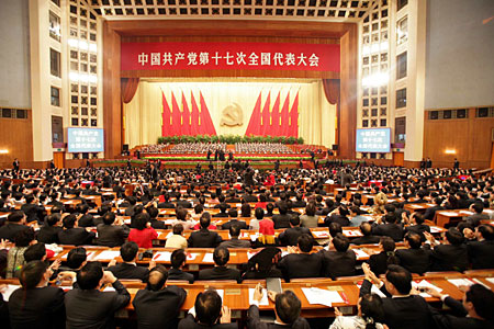 十七大舉行閉幕會   10月21日九時,中國共產黨第十七次全國代表大會閉幕會開始在北京人民大會堂舉行。