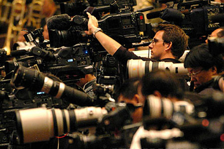 中外媒體關注十七大    正在北京召開的中國共產黨第十七次全國代表大會吸引了世界的目光,國內外媒體持續報道大會相關消息,在會場內外、新聞中心、代表駐地,到處活躍著記者們忙碌的身影。