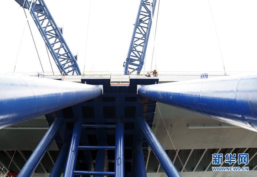 這是準備安裝的香港將軍澳大橋主橋(2月25日攝)。新華社記者 李鋼攝