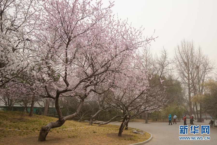 3月15日,人們在北京玉淵潭公園晨練。當日,我國北方多地出現沙塵天氣。新華社記者 陳曄華 攝