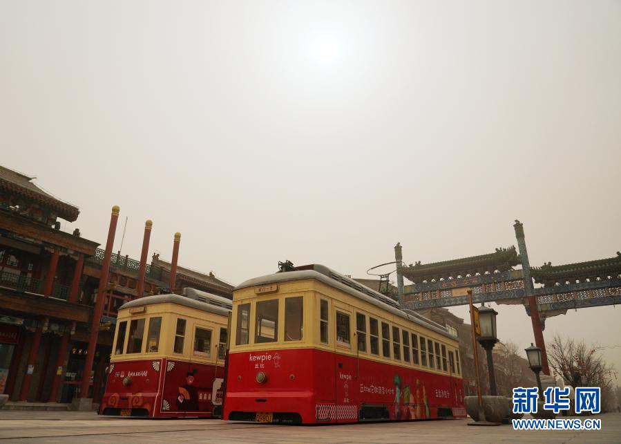 3月15日拍攝的北京前門商業(yè)街。當(dāng)日,我國北方多地出現(xiàn)沙塵天氣。新華社記者 張晨霖 攝