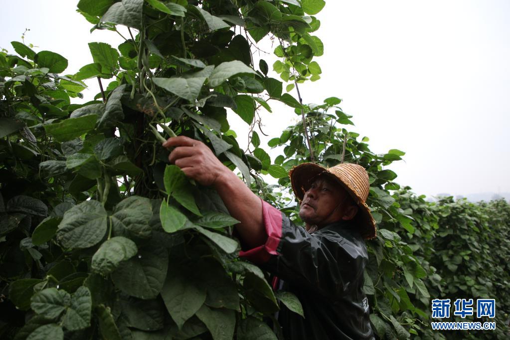 4月5日,云南省紅河哈尼族彝族自治州建水縣臨安鎮莊子河村委會東山寨村的農民在采摘四季豆。