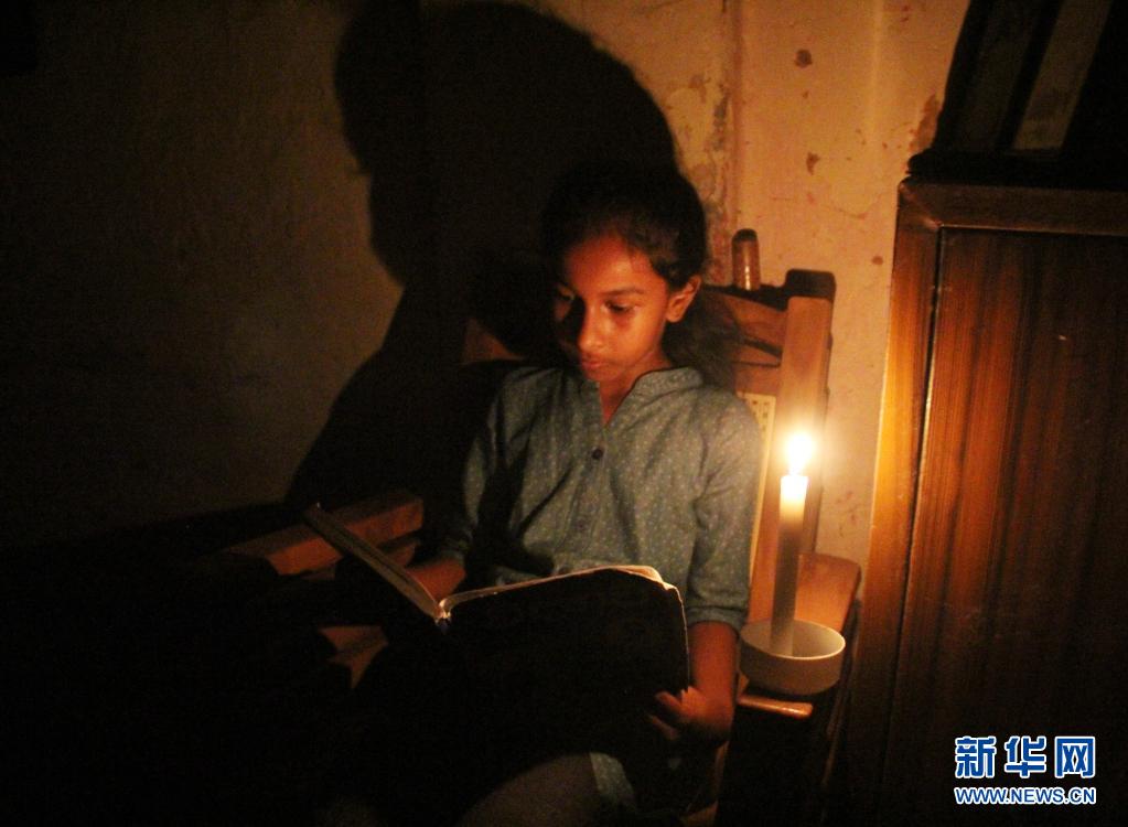 這是2020年8月17日,在斯里蘭卡科倫坡,一名學生在停電后依靠燭光繼續讀書。
