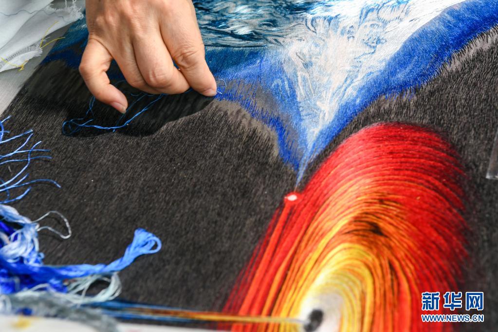 陳英華在位于蘇州高新區鎮湖街道的蘇繡工作室內刺繡(4月14日攝)。新華社記者 李博 攝