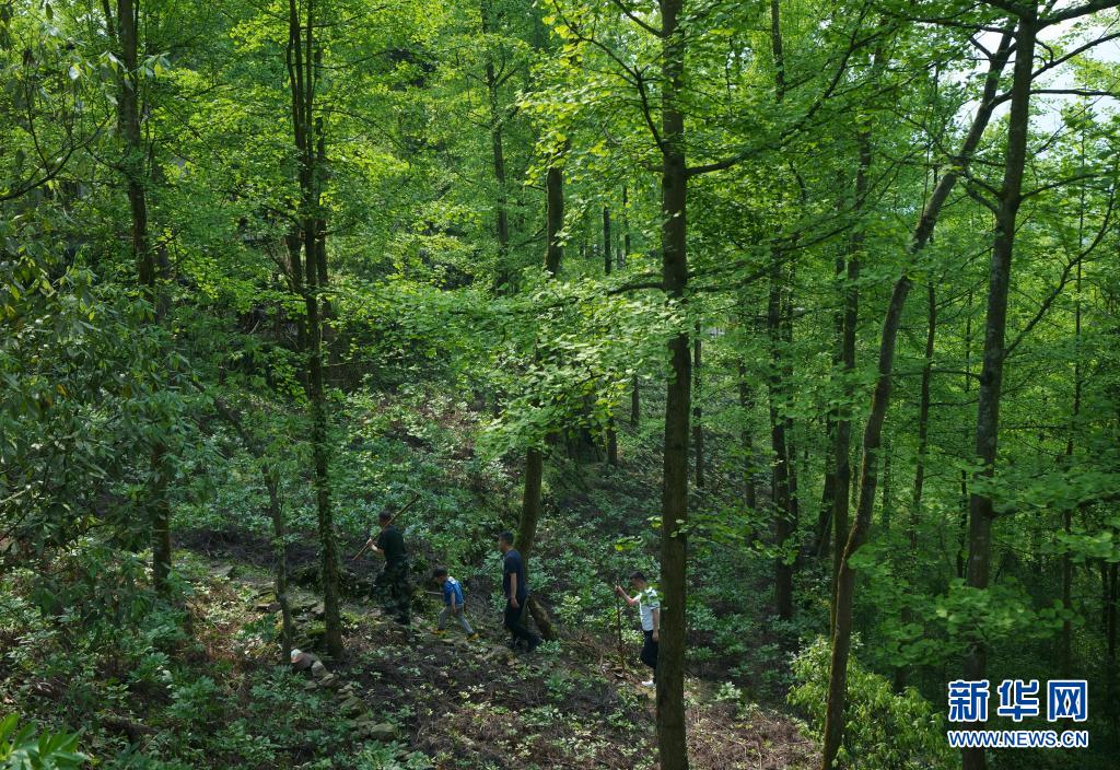 5月4日,林興聰(左一)帶著兒孫們去地里勞動。 新華社記者 江宏景 攝