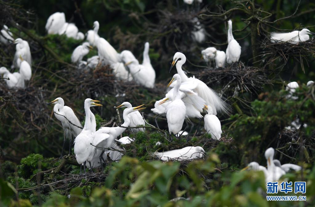近期,在位于鄱陽湖畔的江西省南昌市新建區(qū)象山森林公園內(nèi),已安家筑巢的鷺鳥進入孵化哺育旺季。象山森林公園有著“鷺鳥王國”的美譽,每年都會吸引白鷺、蒼鷺、夜鷺等種類的鷺鳥飛抵棲息和繁衍后代。