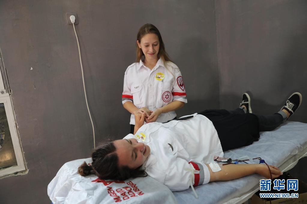 6月14日,志愿者在以色列中部城市莫迪因獻血。