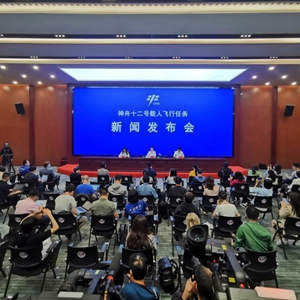6月16日,神舟十二號載人飛行任務新聞發布會在酒泉衛星發射中心召開(手機拍攝)。新華社記者 琚振華 攝