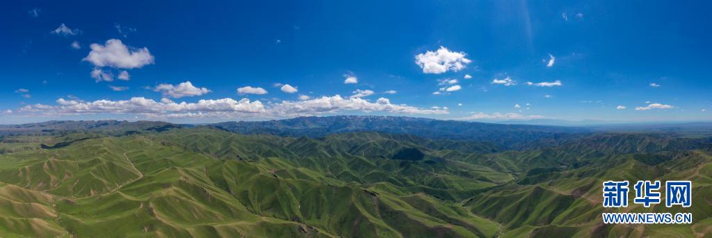 新疆北部裕民縣巴爾魯克山區夏牧場(6月15日攝,無人機全景照片)。