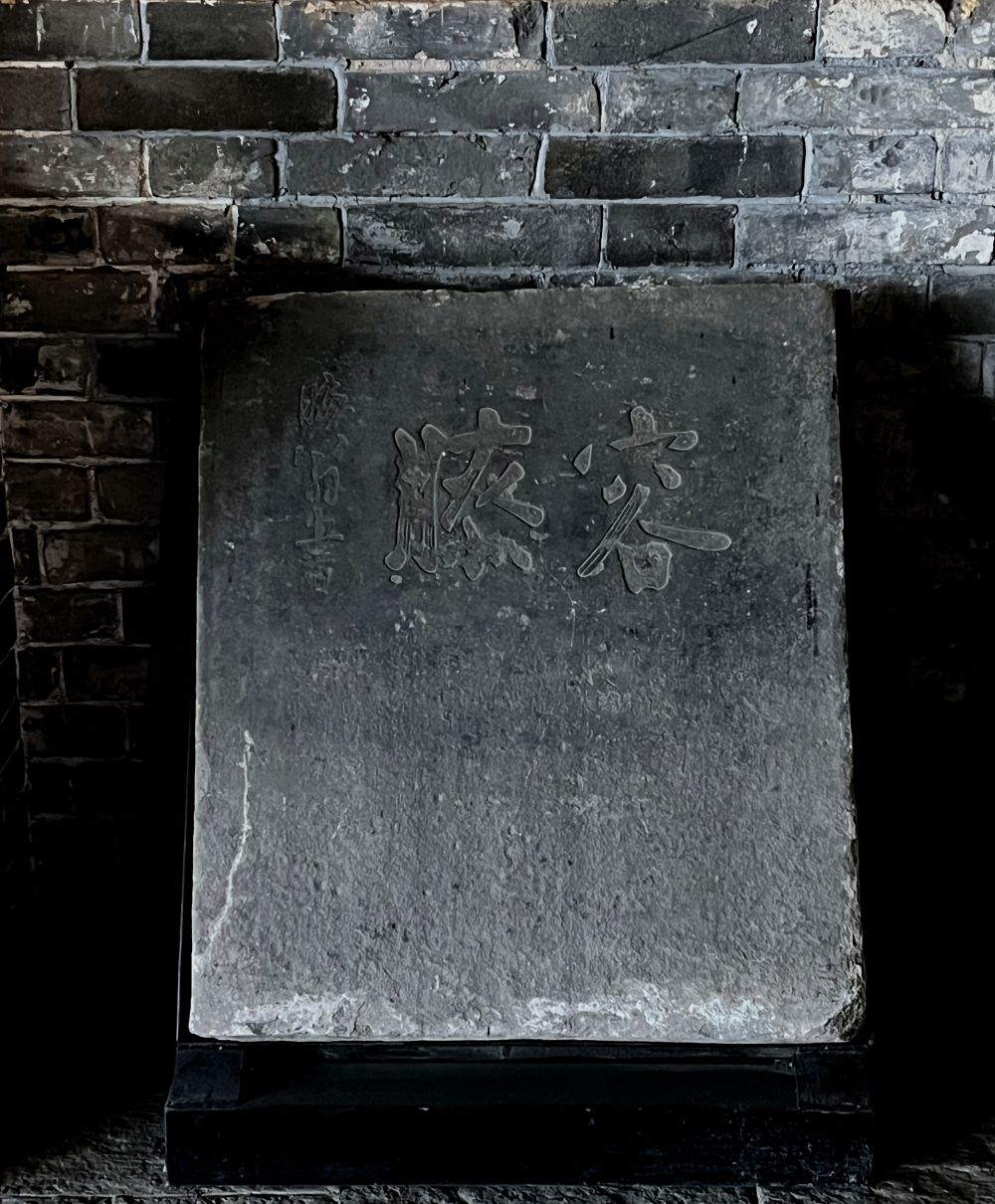 石刻形制敦朴,高86厘米、宽73厘米、厚15厘米,左侧可见“晦翁书”三字小款,在《正定县志·古碑刻》中亦有著录。它最初立于古城中轴的阳和楼上,上世纪30年代迁往县政府,至上世纪50年代,才落户在这古寺一隅,静守于大殿西北角的微光里。