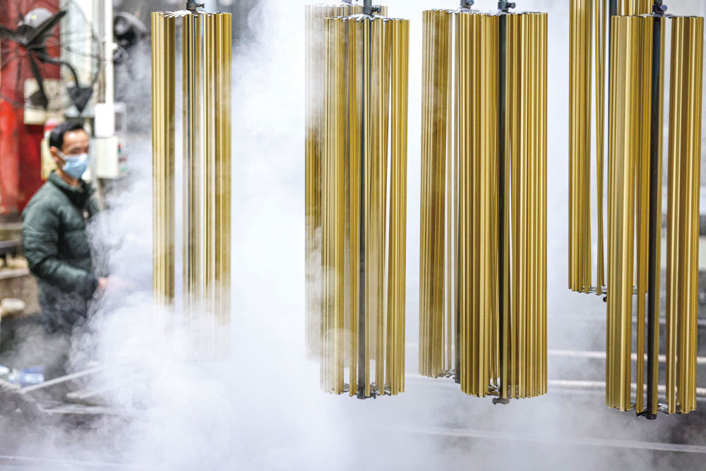 工人在位于浙江省湖州市德清县乾元镇的浙江沃德新材料科技有限公司车间赶制铝型材产品订单。新华社发(倪立芳摄)