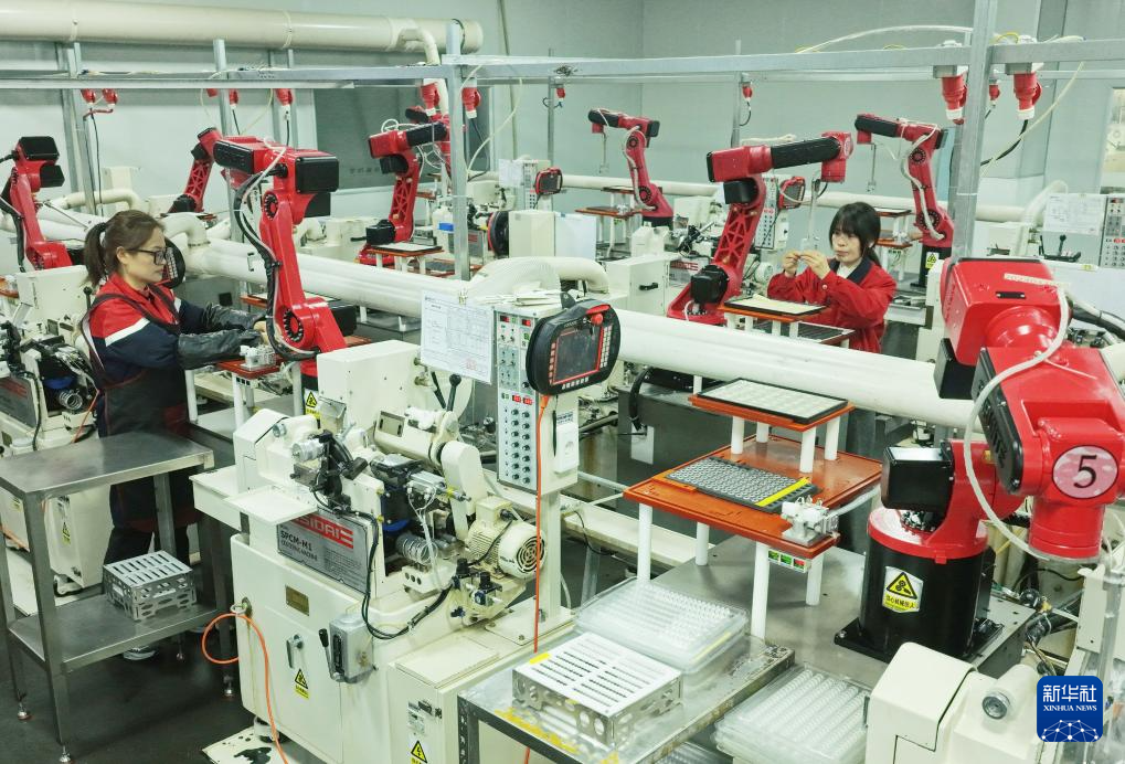 2月24日,工人在位于湖北省秭归县的宜昌旌拓光学有限公司智能生产线上忙碌。
