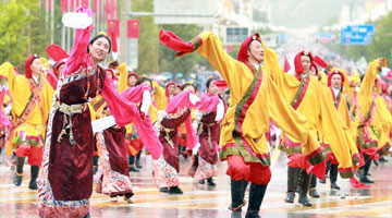 7月26日,演员在大型实景音乐剧《昆仑之约》中表演。