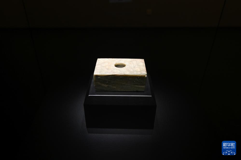 这是7月26日在三星堆博物馆新馆拍摄的兽面凤鸟纹玉方座。新华社记者 王曦 摄