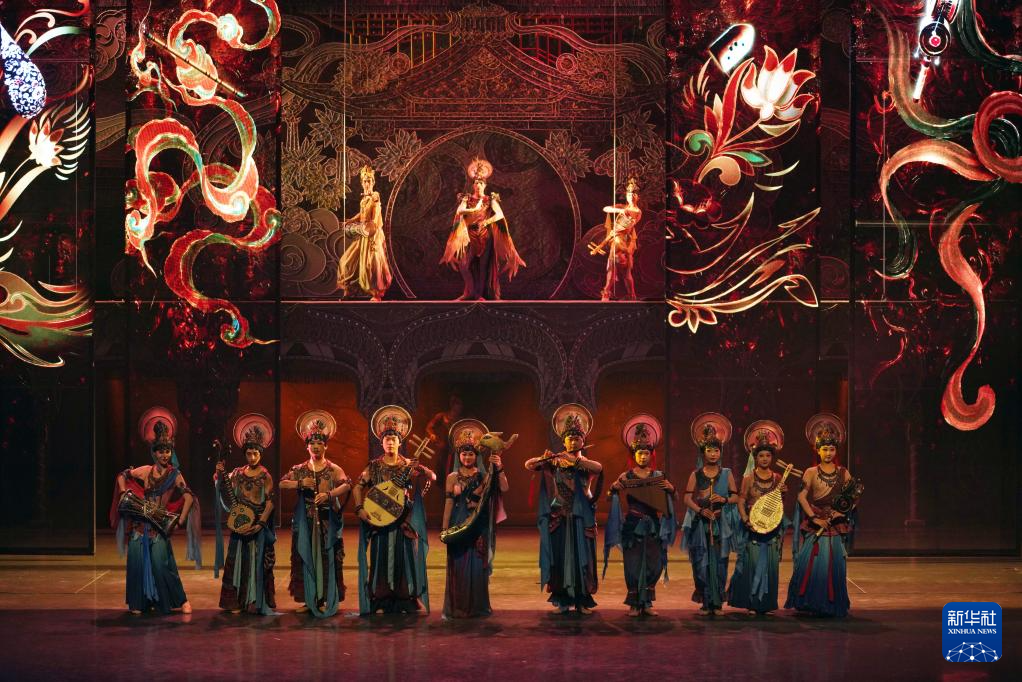 今年以来,脱胎于敦煌文化的洞窟沉浸式体验剧《乐动敦煌》、室内情景体验剧《又见敦煌》、沙漠实景演出《敦煌盛典》和中国残疾人艺术团情景音画剧《千手千眼》四场剧目在丝路名城甘肃敦煌同步上演,剧目将敦煌历史底蕴、服饰文化、乐舞文化等生动融合,为游客呈现出精彩绝伦的敦煌文化视觉盛宴,深受中外游客喜爱。截至8月10日,四大剧目今年已累计演出1175场次,观看游客突破66万人次。其中,《乐动敦煌》演出借助洞窟式实景移动舞台和全息投影等技术,还原了敦煌壁画中的乐舞盛景,讲述了西域少年白歆苦苦追寻并最终在敦煌乐舞壁画中领略到音乐真谛的故事,观众在可游走、互动的沉浸式洞窟剧场内,零距离感受敦煌艺术中诗、舞、音、画的璀璨繁盛。