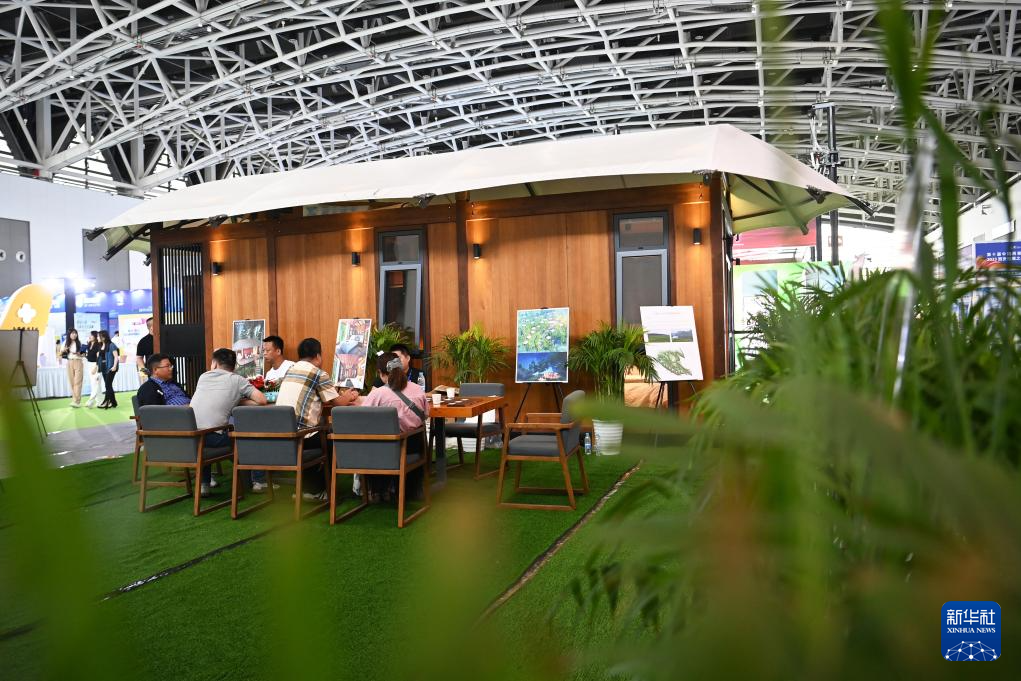 8月17日,参观者在文旅融合馆了解户外品牌