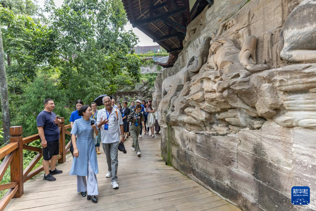 8月19日,嘉宾在大足石刻宝顶山景区内参观。