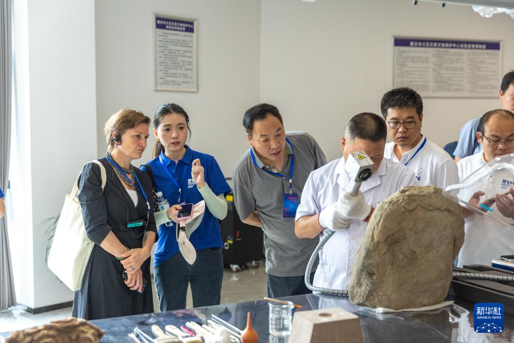 8月19日,嘉宾在大足石刻文物医院内参观。