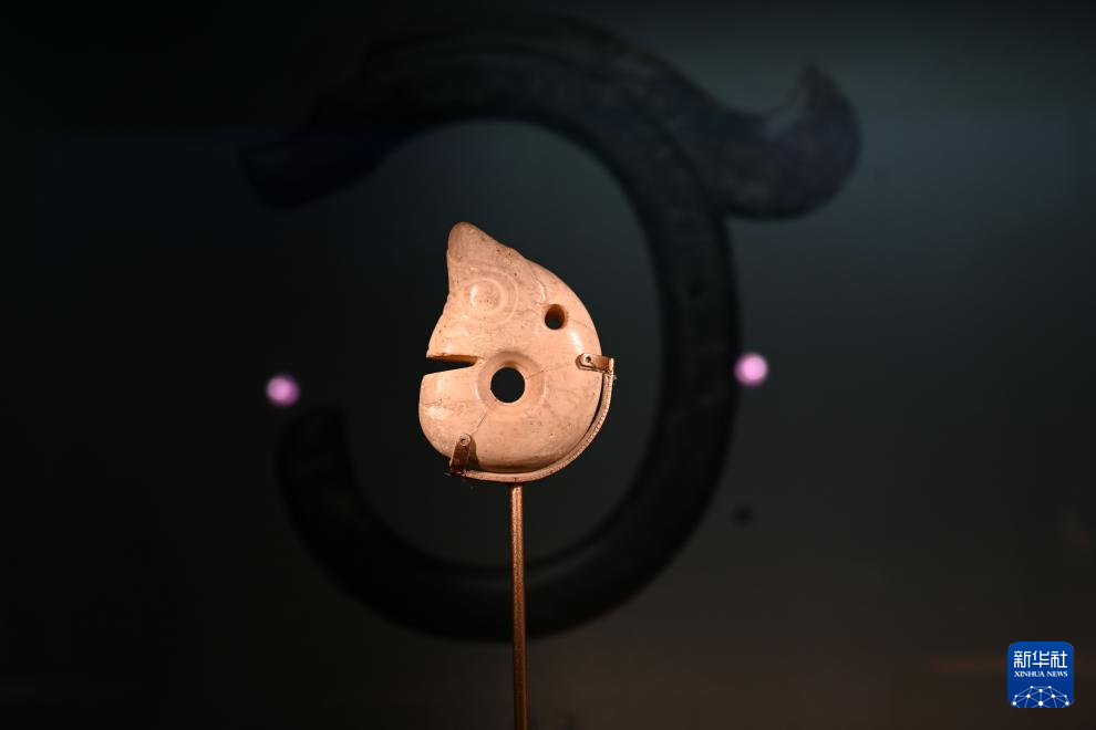 8月18日在中国国家博物馆“中国古代玉器”专题展览上拍摄的红山文化玦形龙。