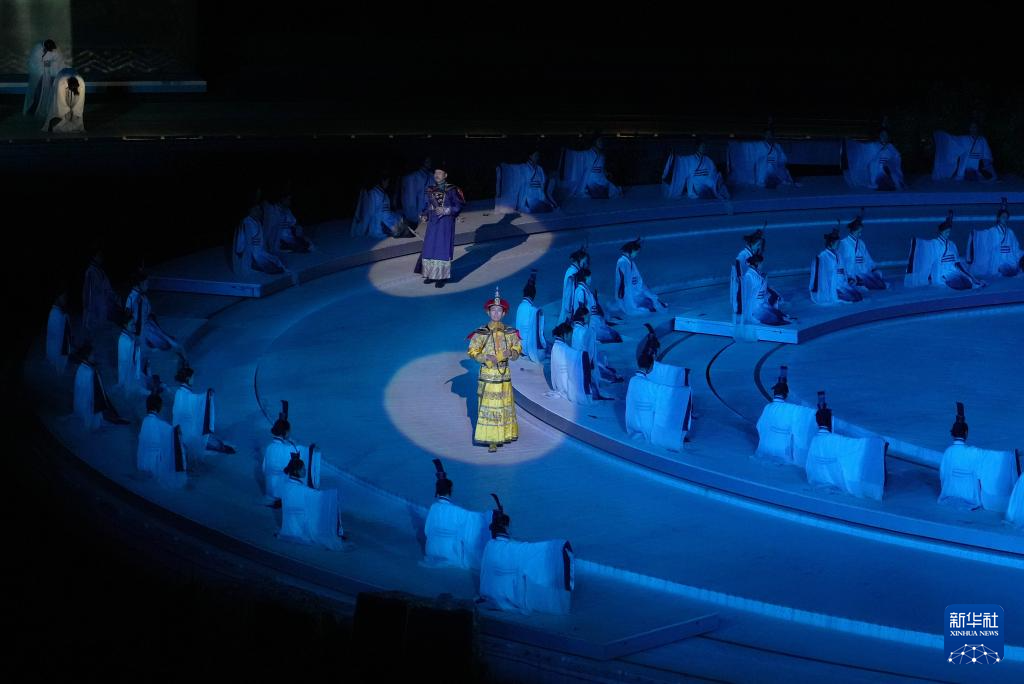 9月3日,演员在大型实景演出《鼎盛王朝·康熙大典》中表演。