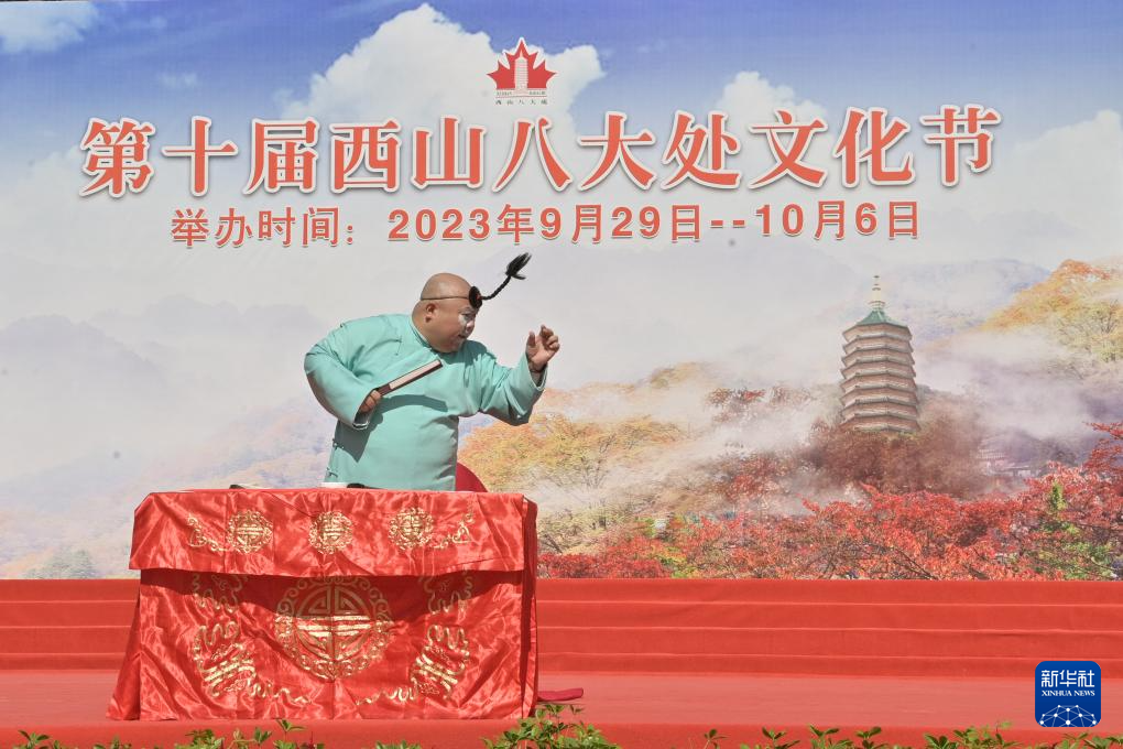 9月30日,演员在第十届西山八大处文化节上表演双簧。