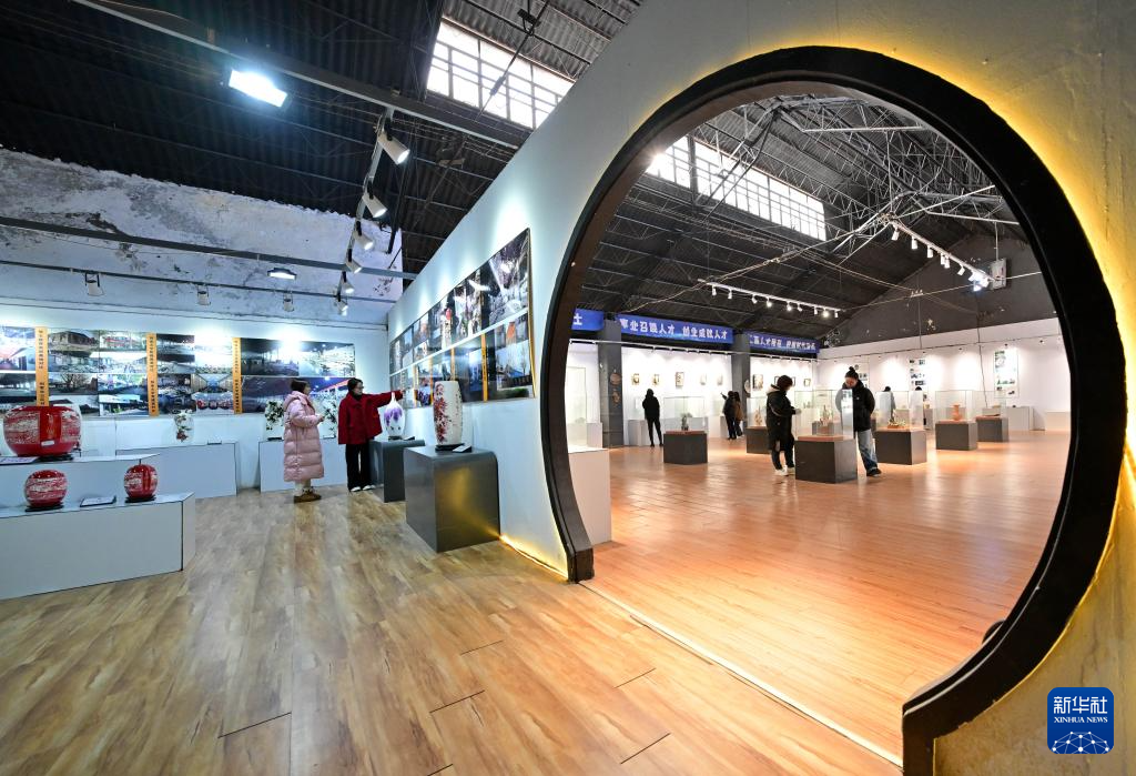 11月21日,游客在唐山市开平区陶瓷文创产业园内的唐山骨质瓷创意博物馆参观。