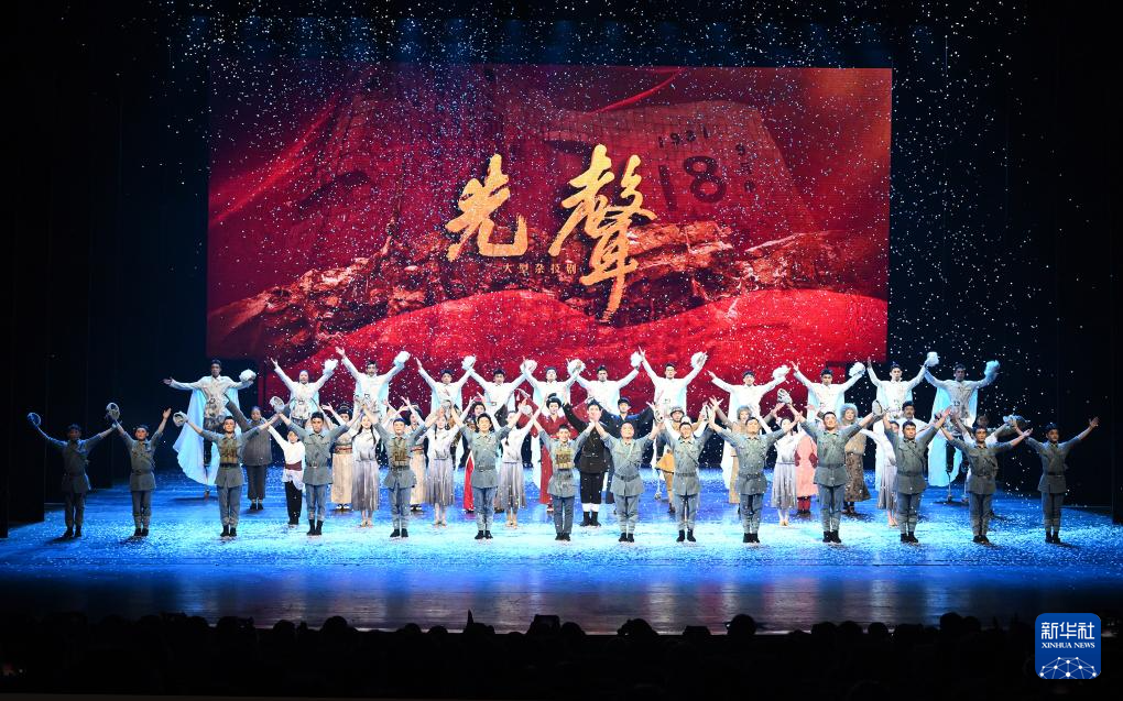 当日,由沈阳杂技演艺集团创作演出的杂技剧《先声》在北京上演。作品通过杂技与戏剧表演的编排与整合,运用多媒体技术,将舞台艺术和电影表现手法融为一体,讲述“九一八”事变中沈阳各界抗击日寇的故事。