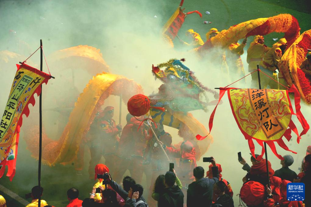元宵佳节临近,人们进行传统舞龙表演,热热闹闹迎元宵。
