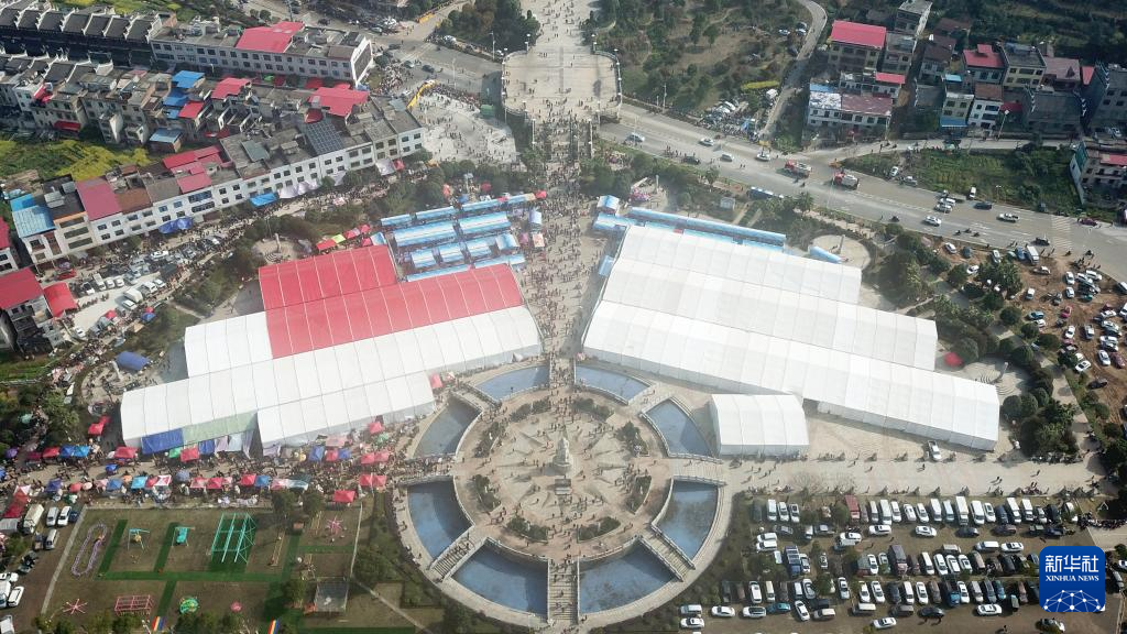 这是3月20日在安仁县拍摄的中草药和农副产品交易集市(无人机照片)。