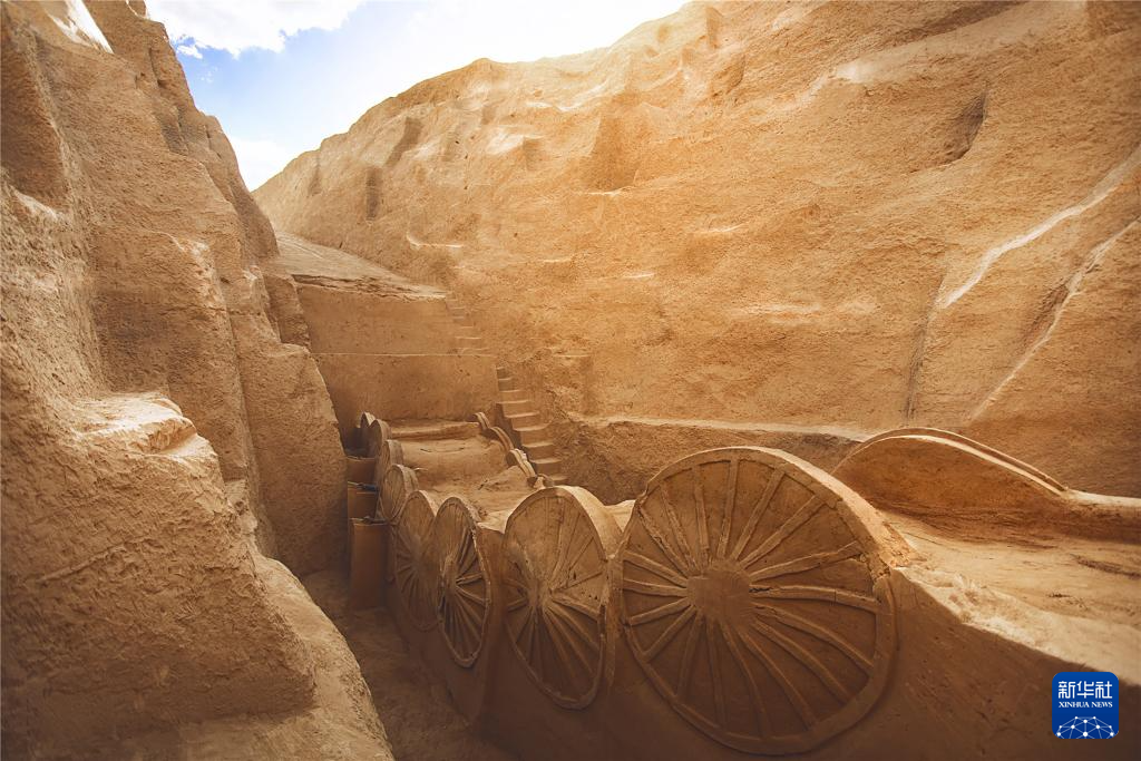 陕西清涧寨沟遗址瓦窑沟M8墓室出土的葬车。