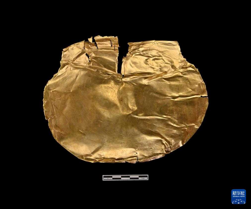 这是郑州商都书院街墓地M2墓葬中出土的金泡(资料照片)。