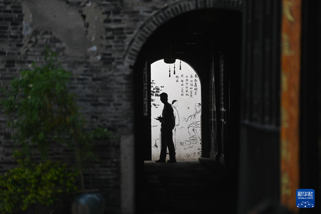 拼版照片:上图为1979年的嘉兴市月河历史街区坛弄(资料照片,庞艺影摄);下图为4月26日拍摄的游客在嘉兴市月河历史街区坛弄游玩(新华社记者江汉摄)。