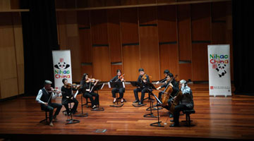 5月1日,“小小讲解员”在四川省内江市张大千博物馆为游客义务讲解。
