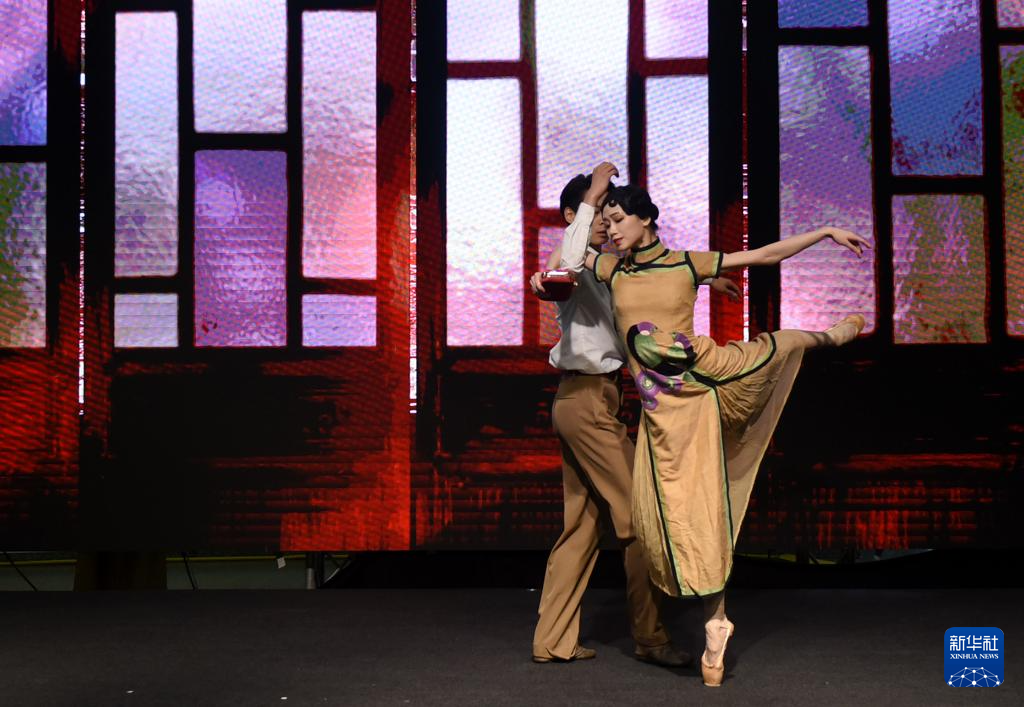 5月8日,演员吴虎生和戚冰雪(右)在表演芭蕾舞剧《花样年华》选段。新华社记者 贺灿铃 摄