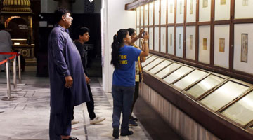 5月17日,游客在位于西安市临潼区的秦始皇帝陵博物院内参观鞍马骑兵俑。