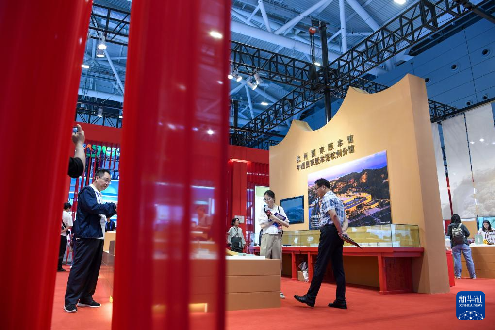 5月23日,观众在第二十届文博会现场观看中国国家版本馆展品。