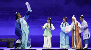 5月22日,演员在评剧《东垣大医》演出中。