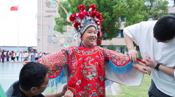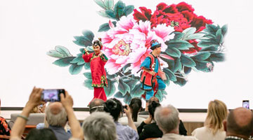 5月22日,观众向评剧《东垣大医》的演员献花。
