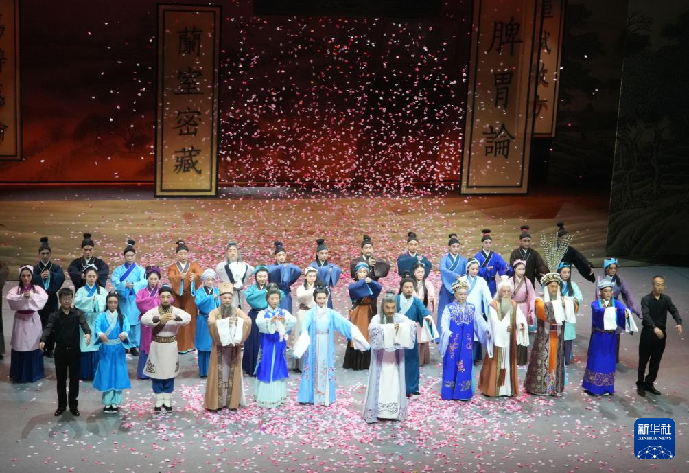 5月22日,评剧《东垣大医》的演职人员集体谢幕。