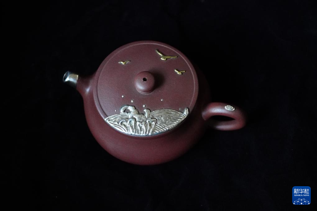 杨涛用“内锔”技艺修复的茶壶(5月8日摄)。
