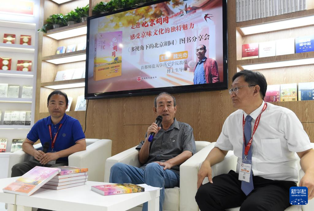 6月19日,在北京展区,旅游教育出版社举行《多视角下的北京胡同》图书分享会,该书主编魏光奇(中)等嘉宾向读者介绍北京胡同的独特魅力。
