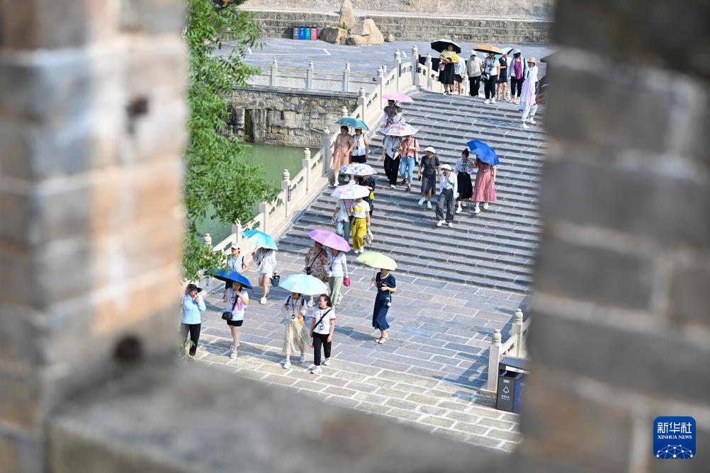 游客参观湘峪古堡(7月11日摄,无人机照片)。