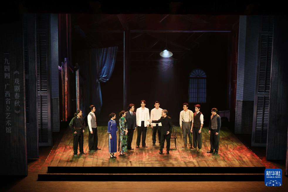 10月26日,在广西省立艺术馆,演员表演话剧《戏剧春秋》。