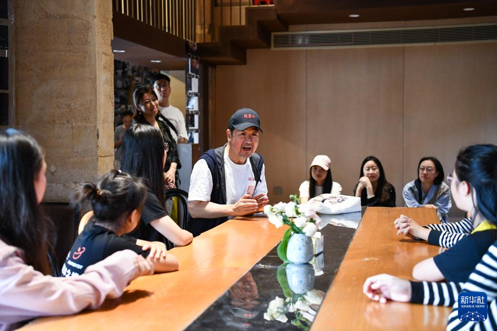 在长守戏剧谷,演员、导演张国立(中)与爱好戏剧的孩子们交流(11月9日摄)。