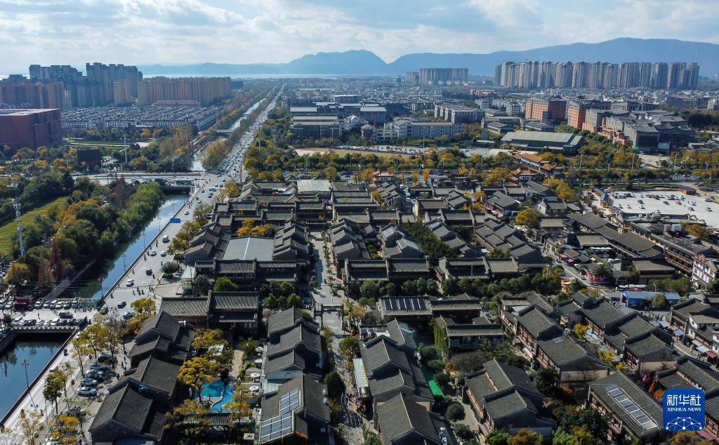 12月8日拍摄的官渡古镇一景(无人机照片)。