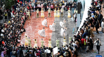 游客在金秀县龙腾屯的古巷里游玩(12月19日摄)。