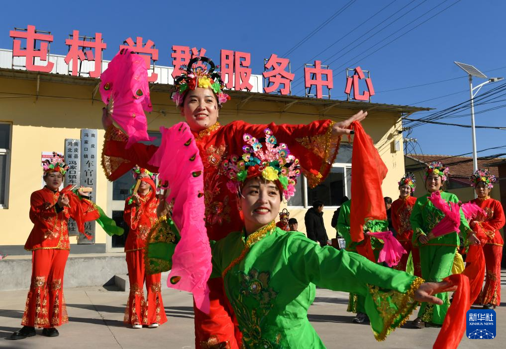 12月22日,艺人在南皮县冯家口镇车官屯村表演沧州落子。