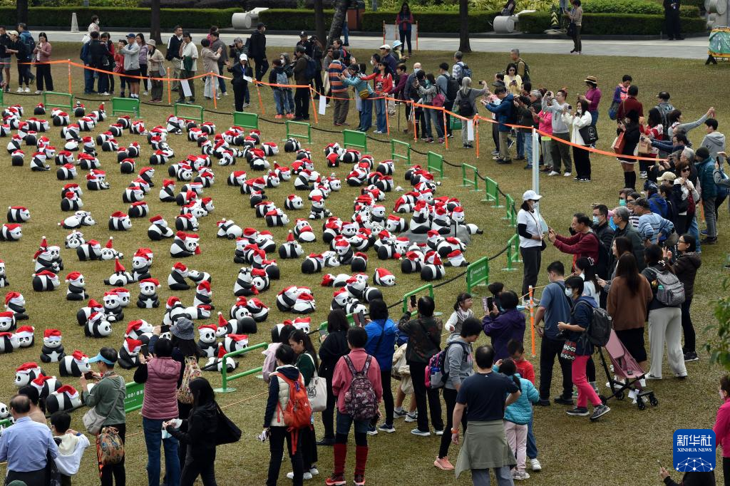 12月25日,大熊猫雕塑在香港中山纪念公园草地上展出。