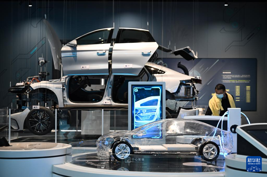1月1日,参观者在新落成的长安云“一带一路”城市展示体验中心内参观。