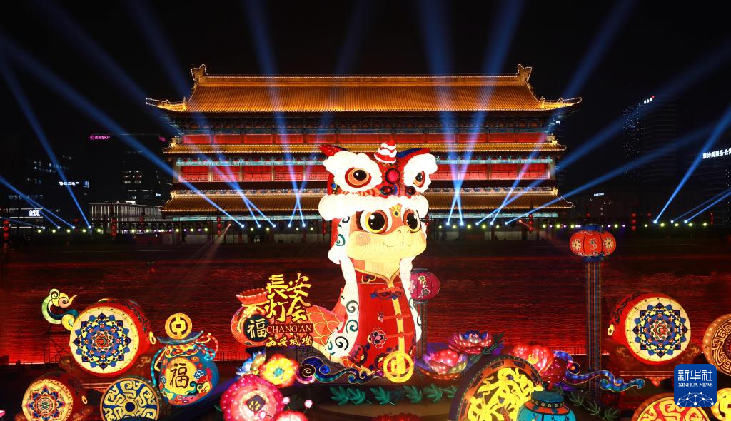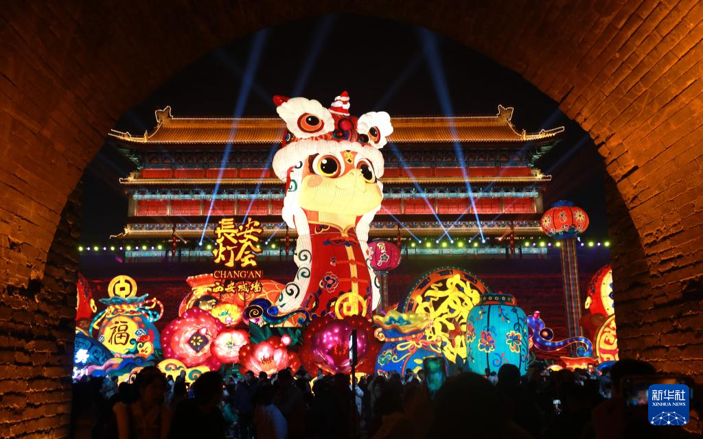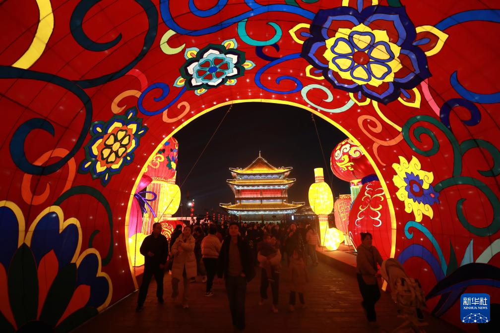 西安城墙新春灯会上彩灯璀璨(1月22日摄)。